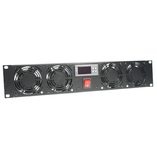 2HE Rack Einbaublende mit 4x 80x80mm²mm Lüftern und elektronischem, mikroprozessorgesteuertem