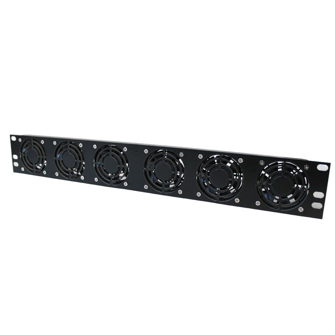 1 HE Rack Einbaublende, bestückt mit 8 x 40x40x15mm Lüfter Low-Speed und elektronischem, mikroprozessorgesteuertem Thermostat mit Digitalanzeige der aktuellen Schranktemperatur zur Temperatursteuerung im 19 Zoll Rack oder Wandverteiler, im Schalt- und Datenschrank. Einbaufertig-Platzsparend! Netzteil einstecken, System läuft. Leistungsfähig und geräuscharm. Standard Farbe: Schwarz, weitere Farben auf Anfrage lieferbar. Voreingestellt auf 24°C „ein“, 21°C „aus“, bauseits einfach an die Einsatzbedingungen justierbar.